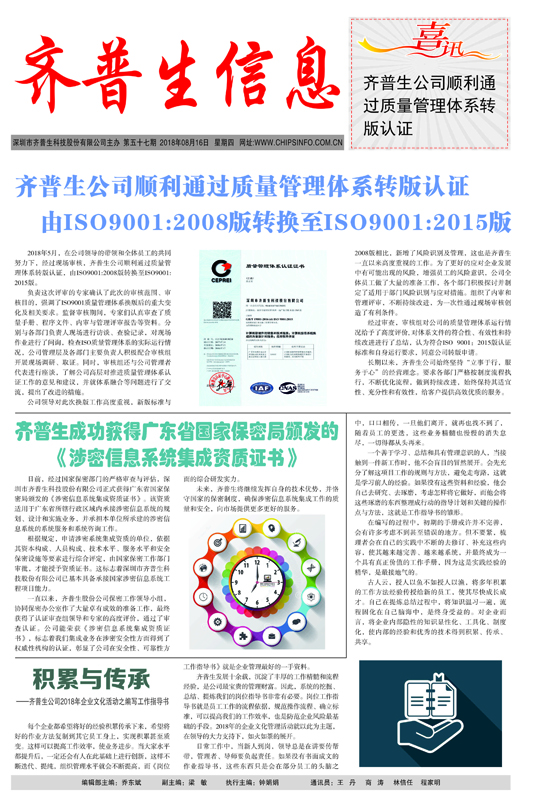 齊普生成功獲得廣東省國(guó)家保密局頒發(fā)的 《涉密信息系統(tǒng)集成資質(zhì)證書》