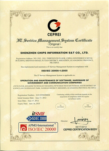 ISO是國際權威的標準化組織,ISO20000是該組織于2005年12月公布的有關IT服務管理體系的標準文件。ISO20000標準以主動預防性方式,確保通過認證的企業或組織能夠提供高水平的IT服務滿足客戶和業務需求。該資質的獲得將顯著提升齊普生的市場競爭力和行業影響力,并為齊普生的業務發展帶來更多的機遇。作為國家級國家級高新技術企業和專業的IT服務提供商,獲得ISO20000認證資質是齊普生發展的一座里程碑,標志著齊普生已經進入世界具有最高標準IT服務管理水平的企業行列。