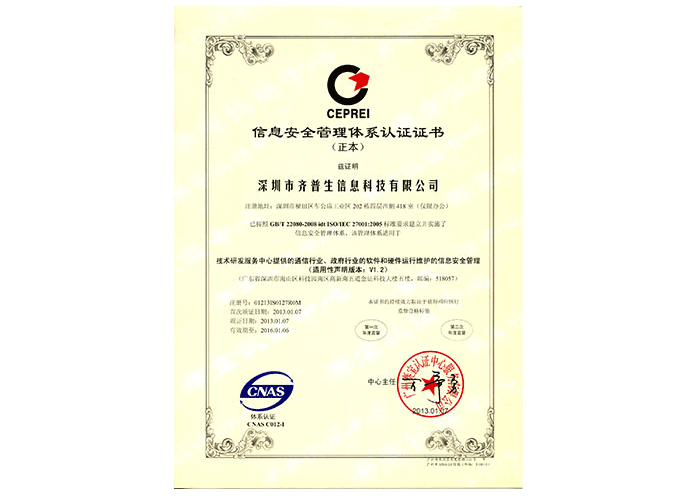 • ISO/IEC 20000 IT服務管理體系認證證書